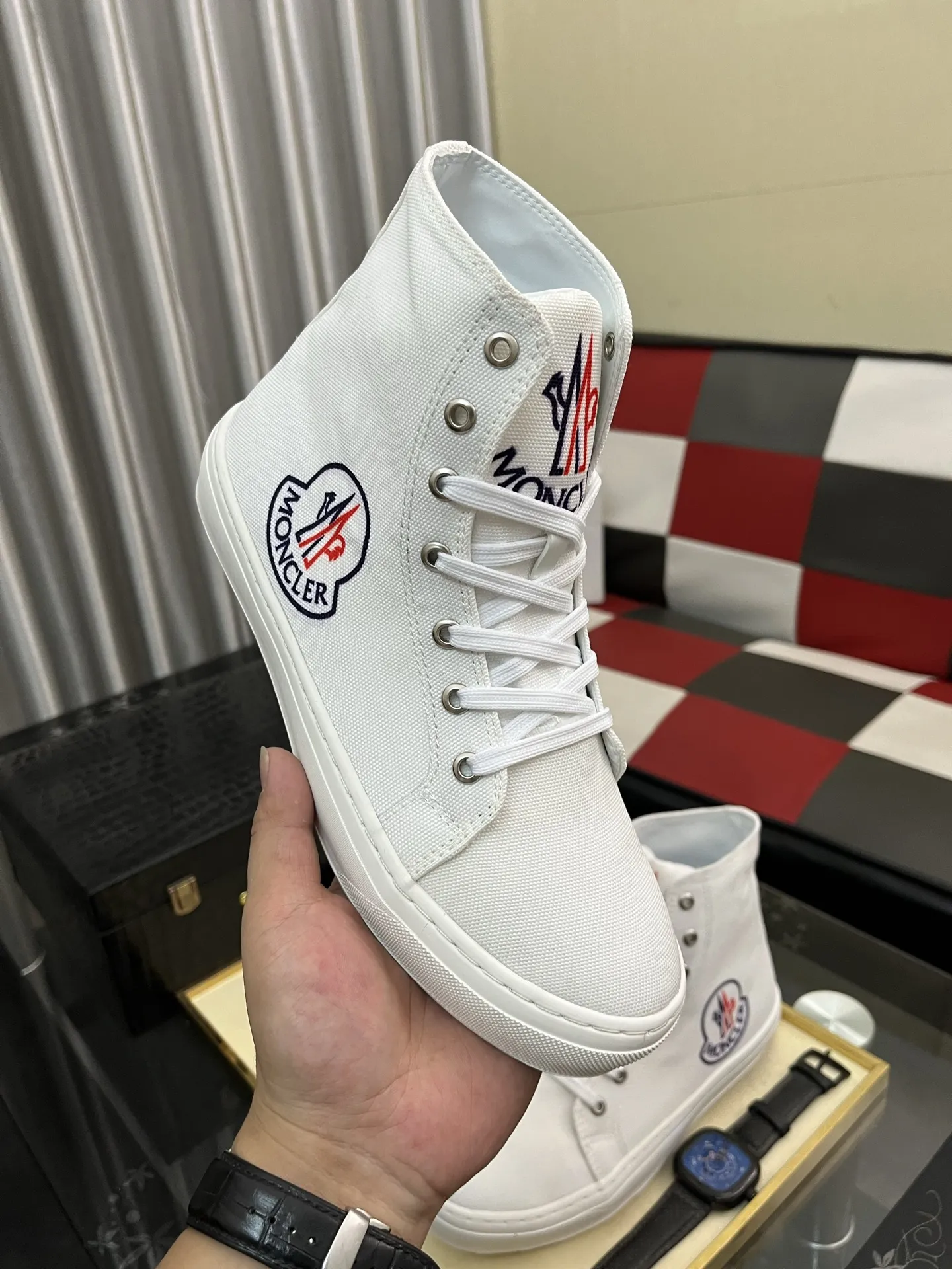 Wholesale cheap replica Moncler High Tops Shoes For Men #1399820 by discount price $$85.00 USD outlet for sale.