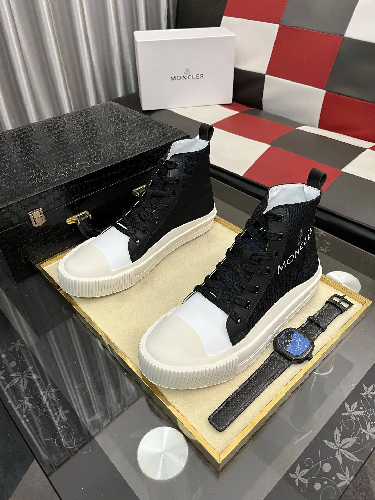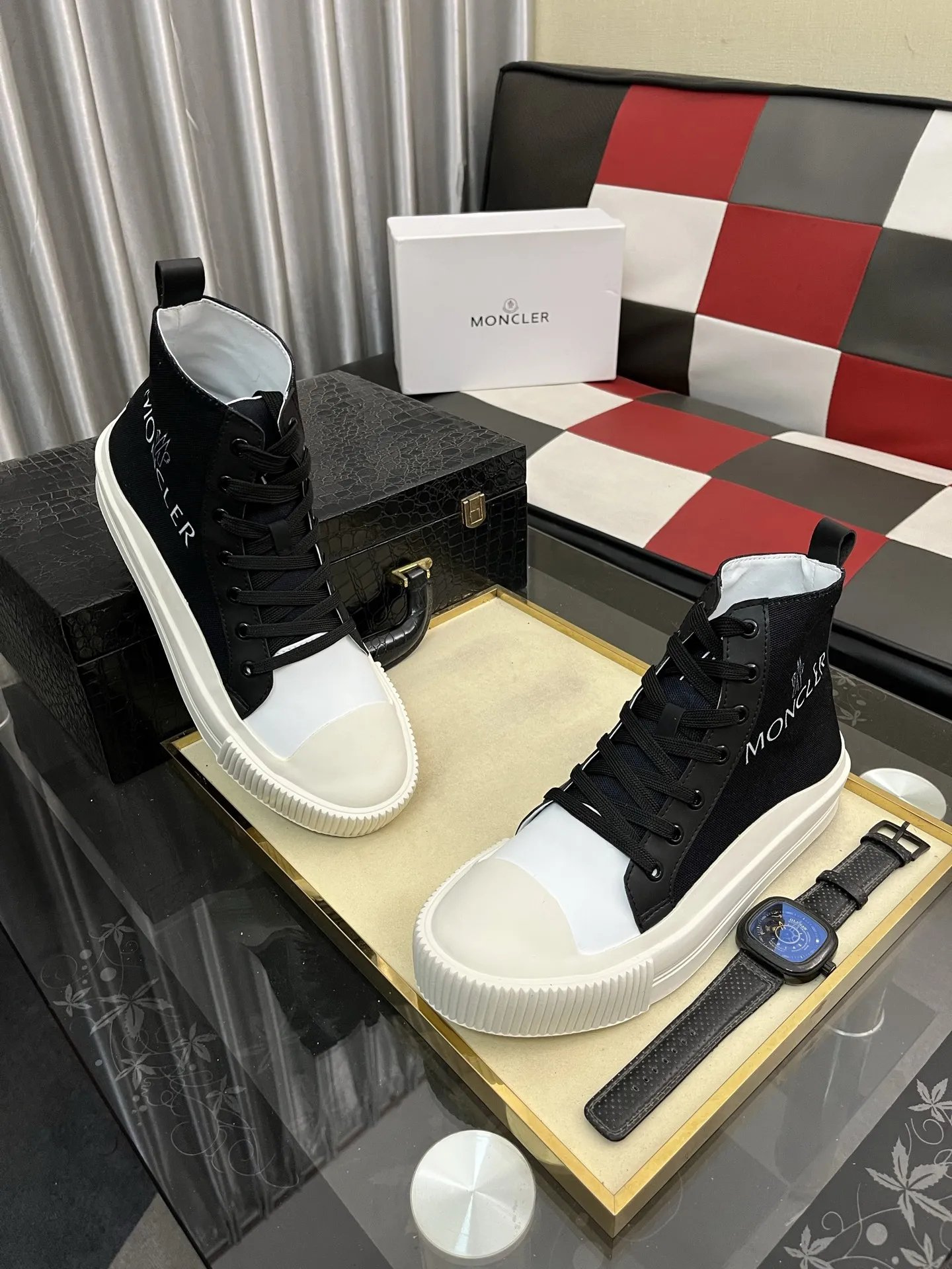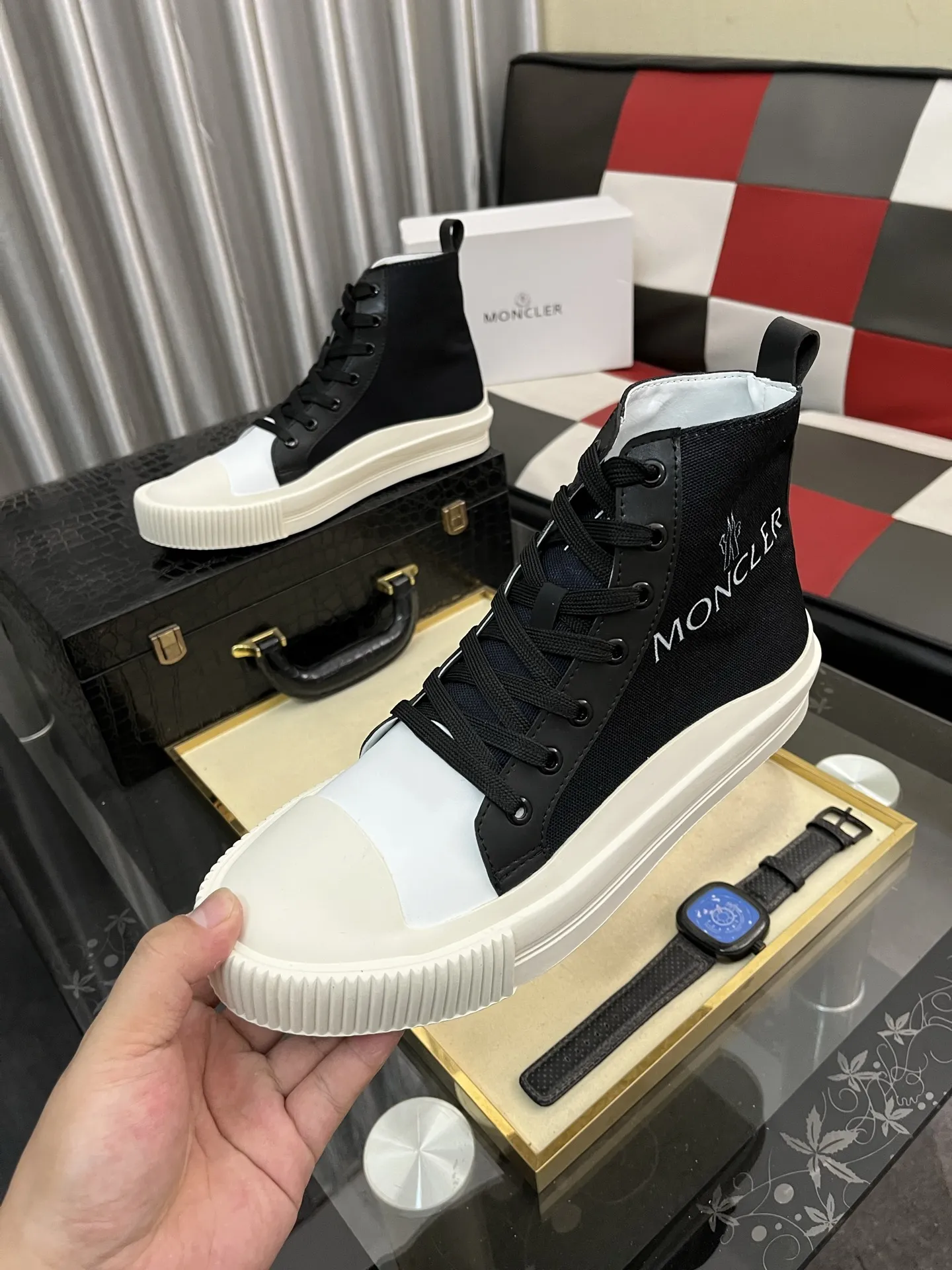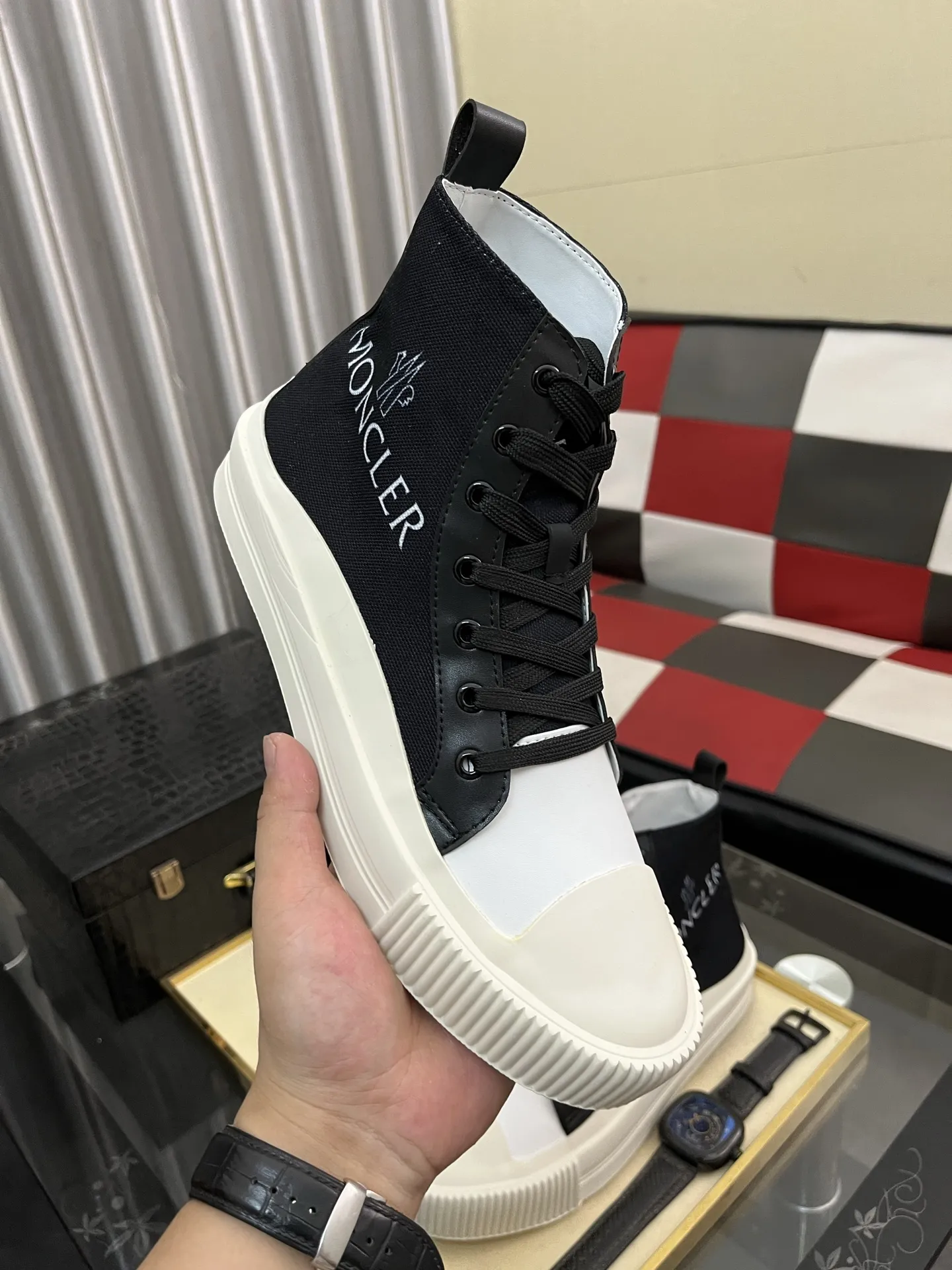 Wholesale cheap replica Moncler High Tops Shoes For Men #1407841 by discount price $$85.00 USD outlet for sale.