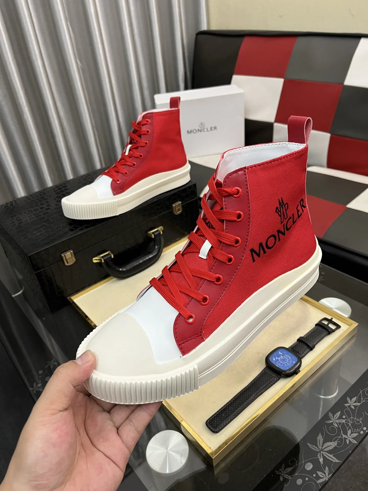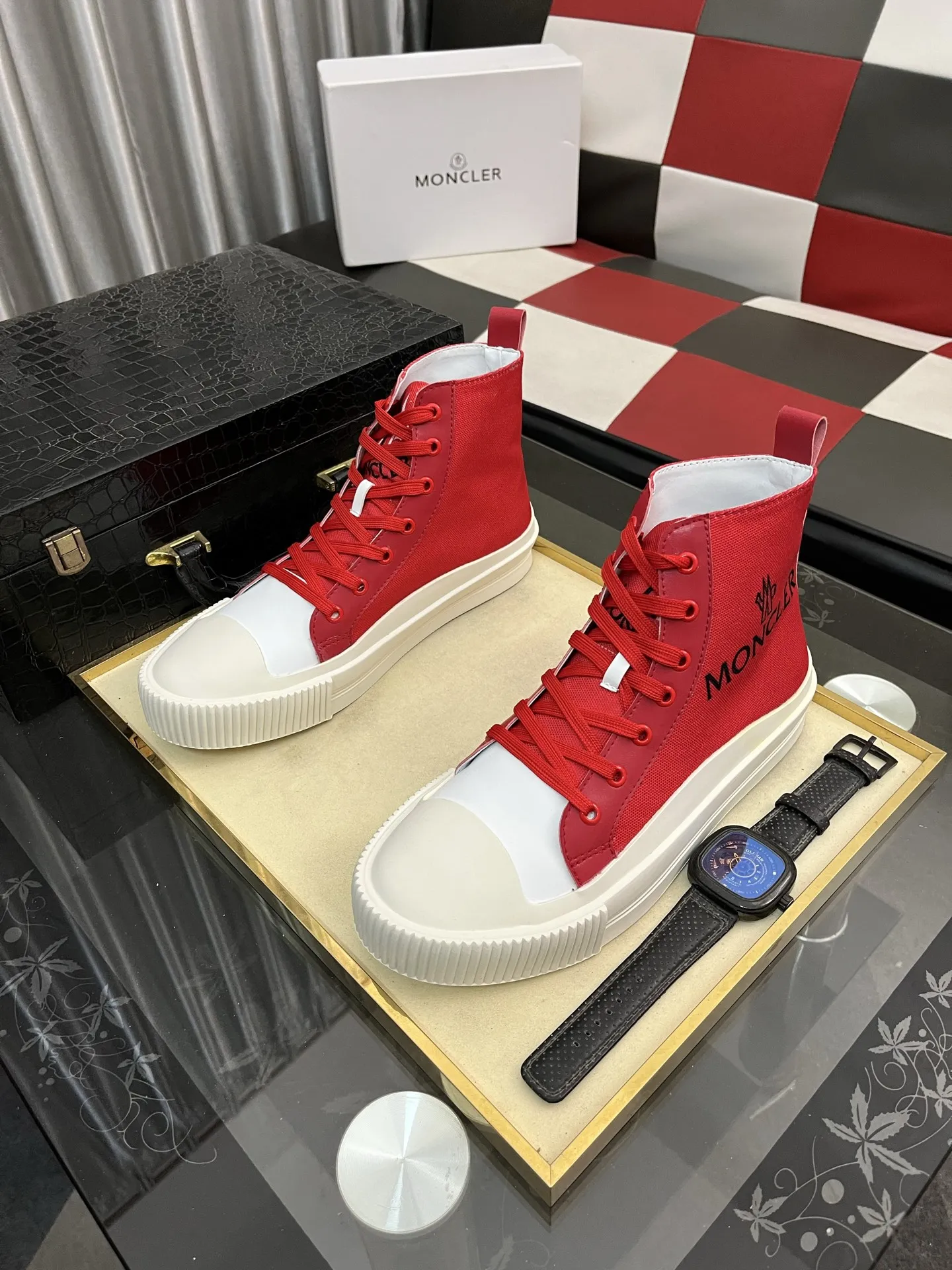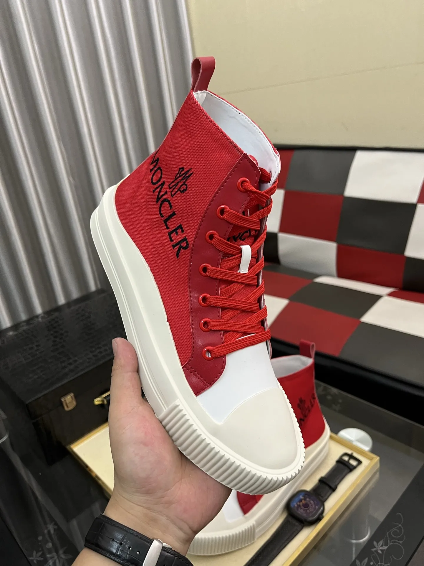 Wholesale cheap replica Moncler High Tops Shoes For Men #1407846 by discount price $$85.00 USD outlet for sale.