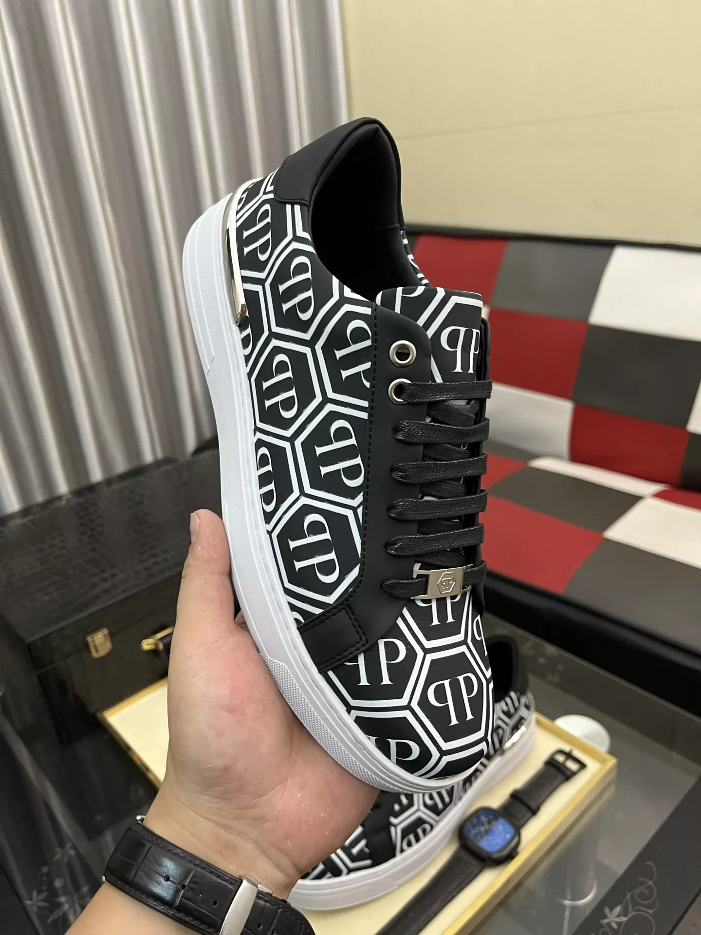 The brand Philipp Plein new arrivals outlet, Gender MenSize US 4=EUR(38), US 5=EUR(39), US 6=EUR(40), US 7=EUR(41), US 8=EUR(42), US 9=EUR(43), US 10=EUR(44) get discount price with best quality!