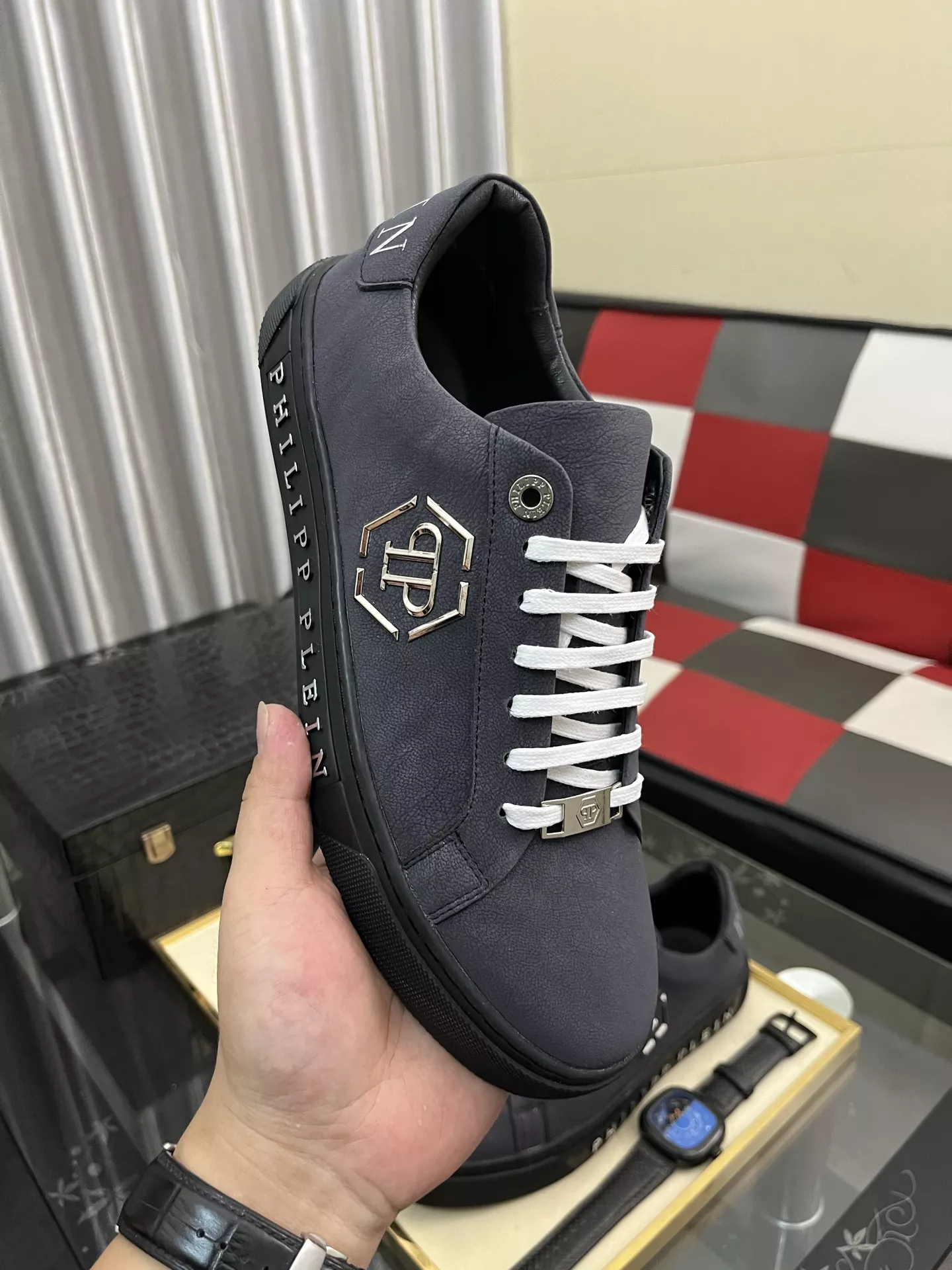 The brand Philipp Plein new arrivals outlet, Gender MenSize US 4=EUR(38), US 5=EUR(39), US 6=EUR(40), US 7=EUR(41), US 8=EUR(42), US 9=EUR(43), US 10=EUR(44) get discount price with best quality!