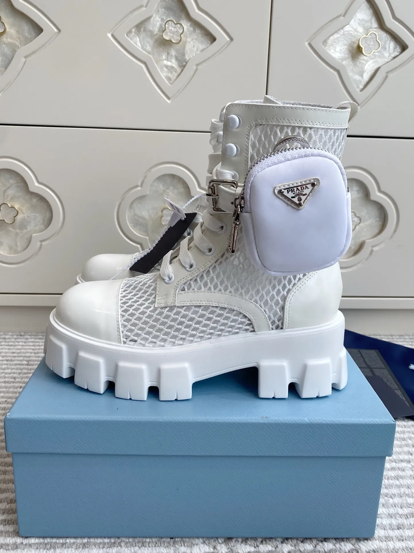 The brand Prada new arrivals outlet, Gender WomenSize US 5=EUR(35), US 5.5=EUR(36), US 6=EUR(37), US 7=EUR(38), US 8=EUR(39), US 8.5=EUR(40) get discount price with best quality!