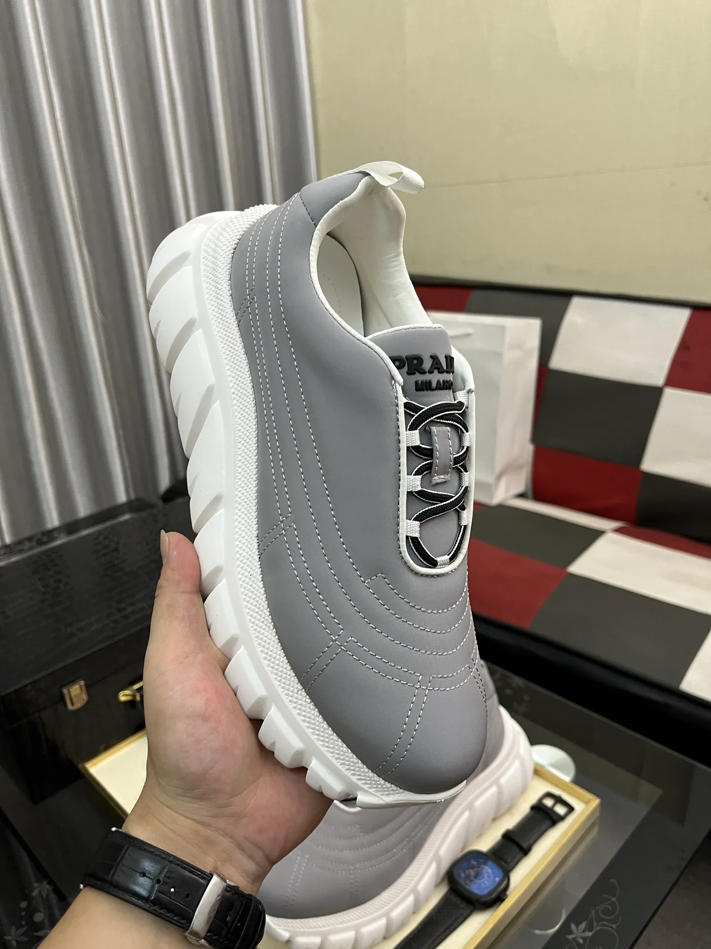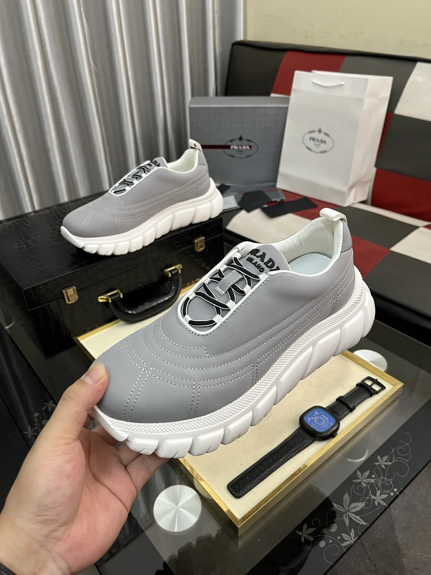 The brand Prada new arrivals outlet, Gender MenSize US 4=EUR(38), US 5=EUR(39), US 6=EUR(40), US 7=EUR(41), US 8=EUR(42), US 9=EUR(43), US 10=EUR(44) get discount price with best quality!