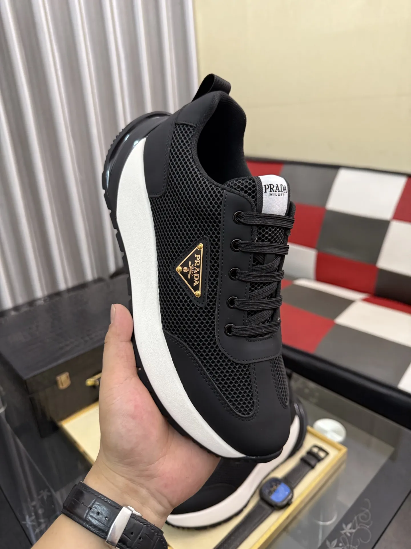 The brand Prada new arrivals outlet, Gender MenSize US 4=EUR(38), US 5=EUR(39), US 6=EUR(40), US 7=EUR(41), US 8=EUR(42), US 9=EUR(43), US 10=EUR(44) get discount price with best quality!