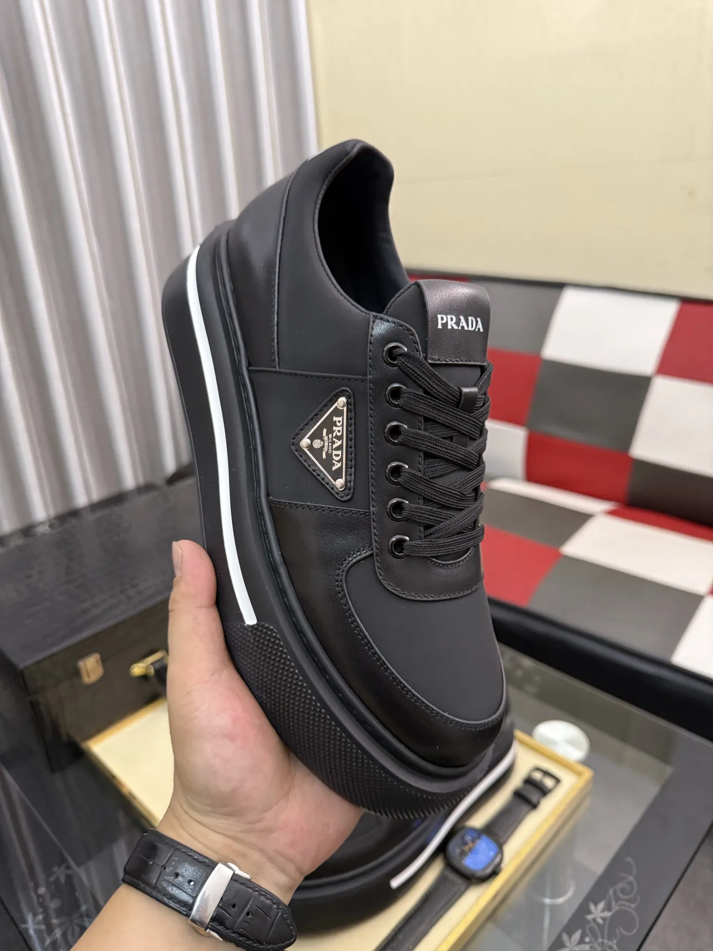 The brand Prada new arrivals outlet, Gender MenSize US 4=EUR(38), US 5=EUR(39), US 6=EUR(40), US 7=EUR(41), US 8=EUR(42), US 9=EUR(43), US 10=EUR(44) get discount price with best quality!