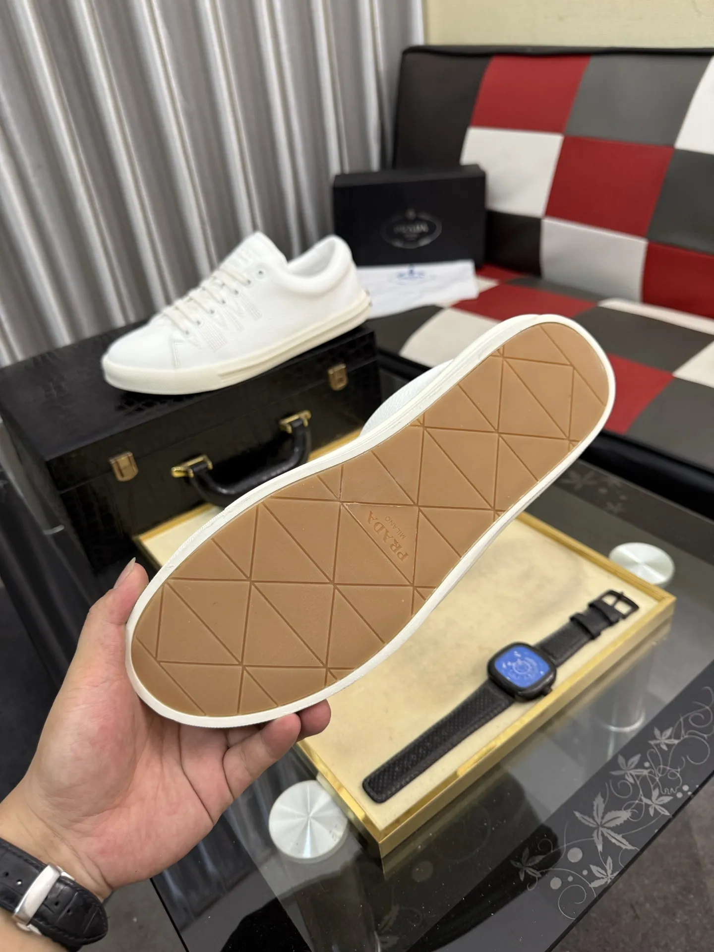 The brand Prada new arrivals outlet, Gender MenSize US 4=EUR(38), US 5=EUR(39), US 6=EUR(40), US 7=EUR(41), US 8=EUR(42), US 9=EUR(43), US 10=EUR(44) get discount price with best quality!