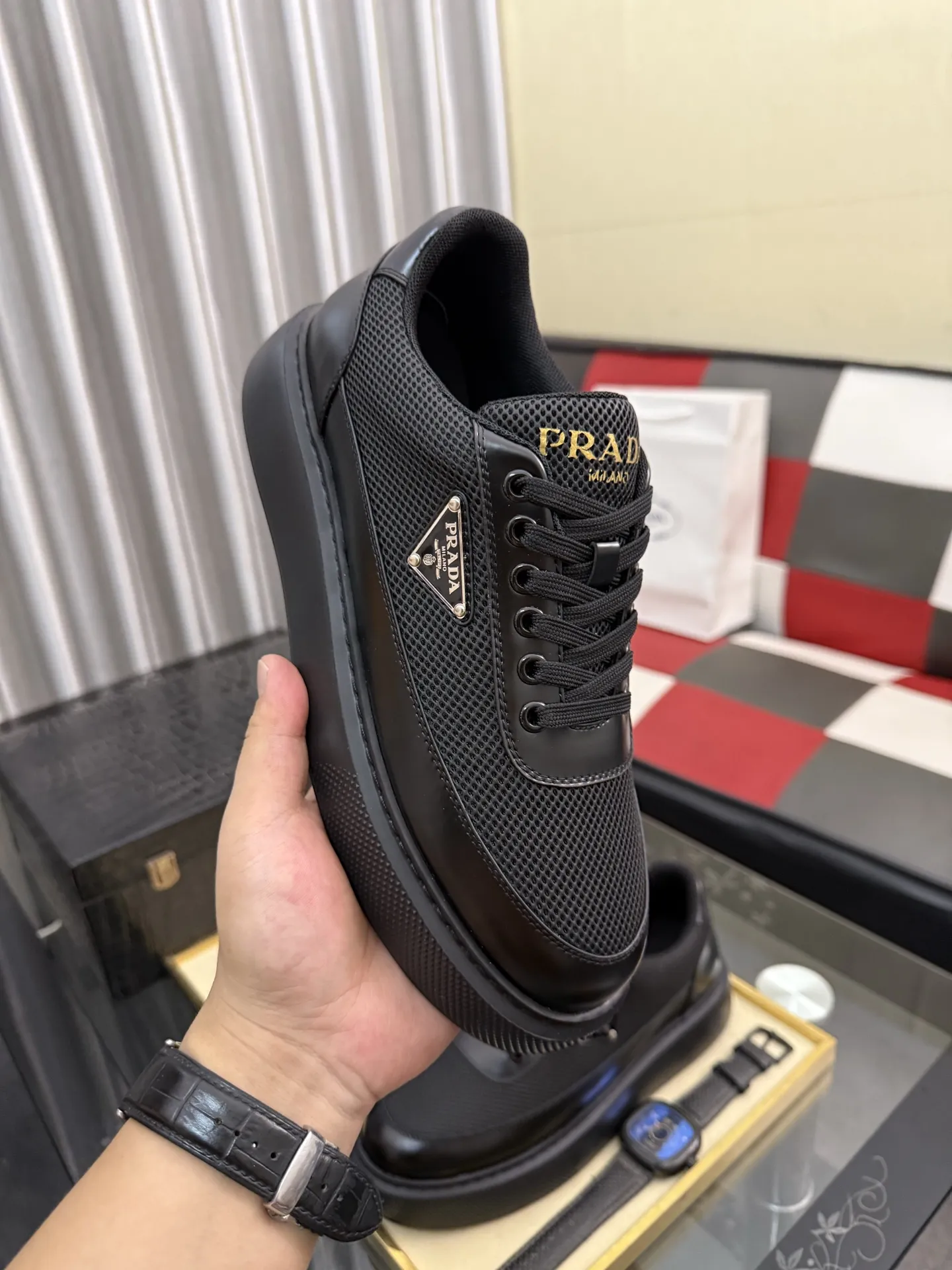 The brand Prada new arrivals outlet, Gender MenSize US 4=EUR(38), US 5=EUR(39), US 6=EUR(40), US 7=EUR(41), US 8=EUR(42), US 9=EUR(43), US 10=EUR(44) get discount price with best quality!