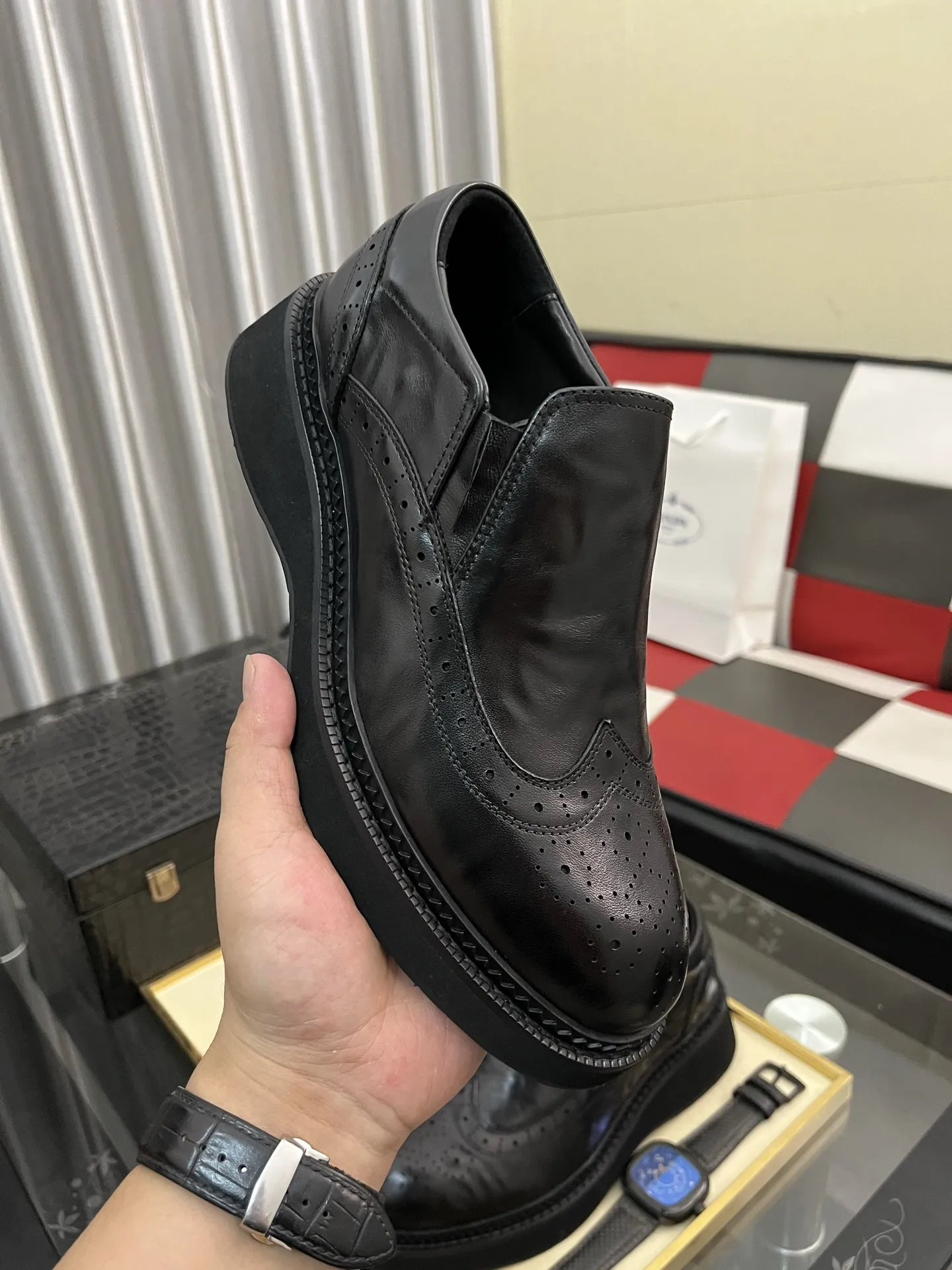 Wholesale cheap replica Prada Leather Shoes For Men #1408768 by discount price $$115.00 USD outlet for sale.