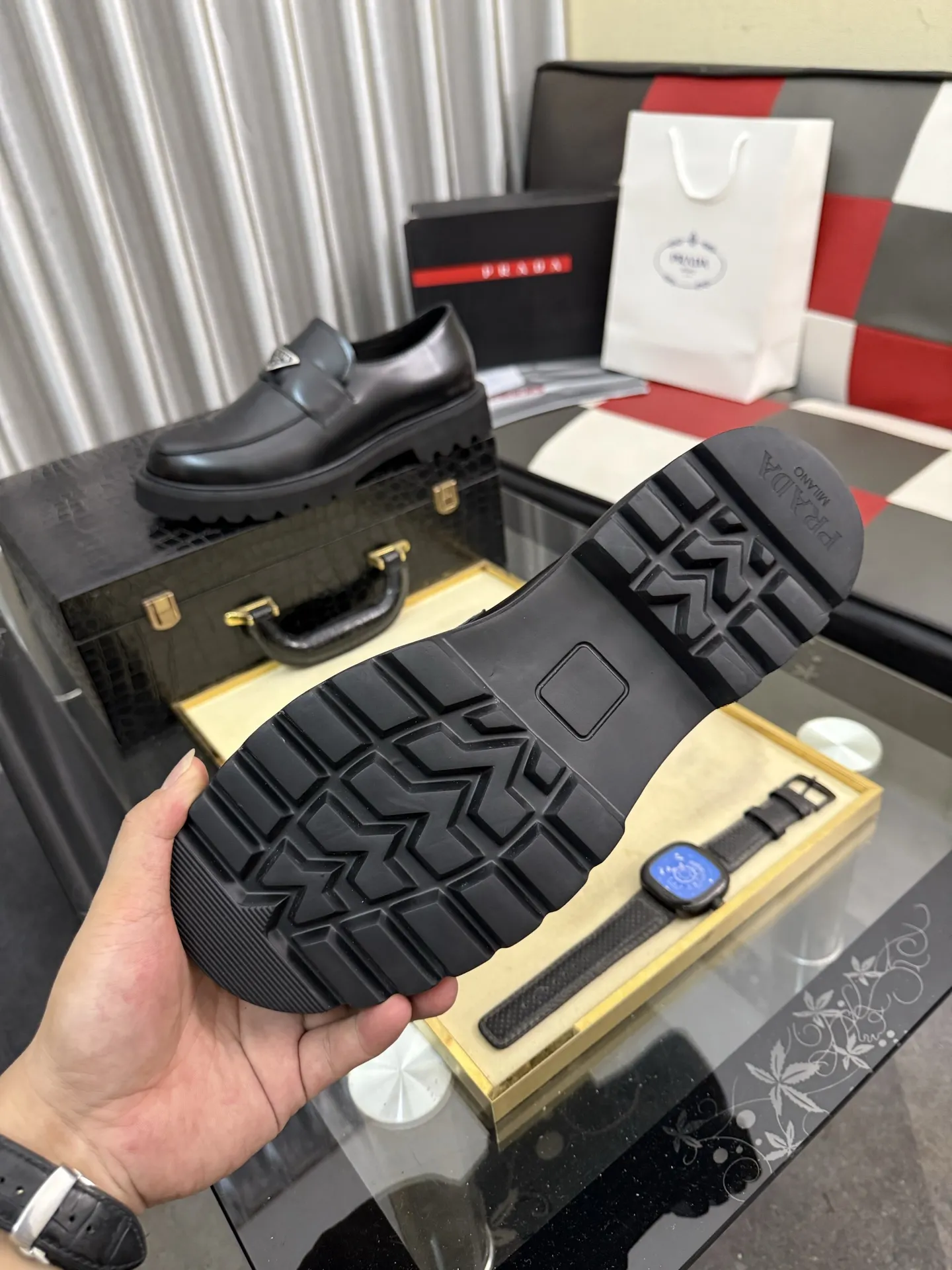 The brand Prada new arrivals outlet, Gender MenSize US 4=EUR(38), US 5=EUR(39), US 6=EUR(40), US 7=EUR(41), US 8=EUR(42), US 9=EUR(43), US 10=EUR(44) get discount price with best quality!
