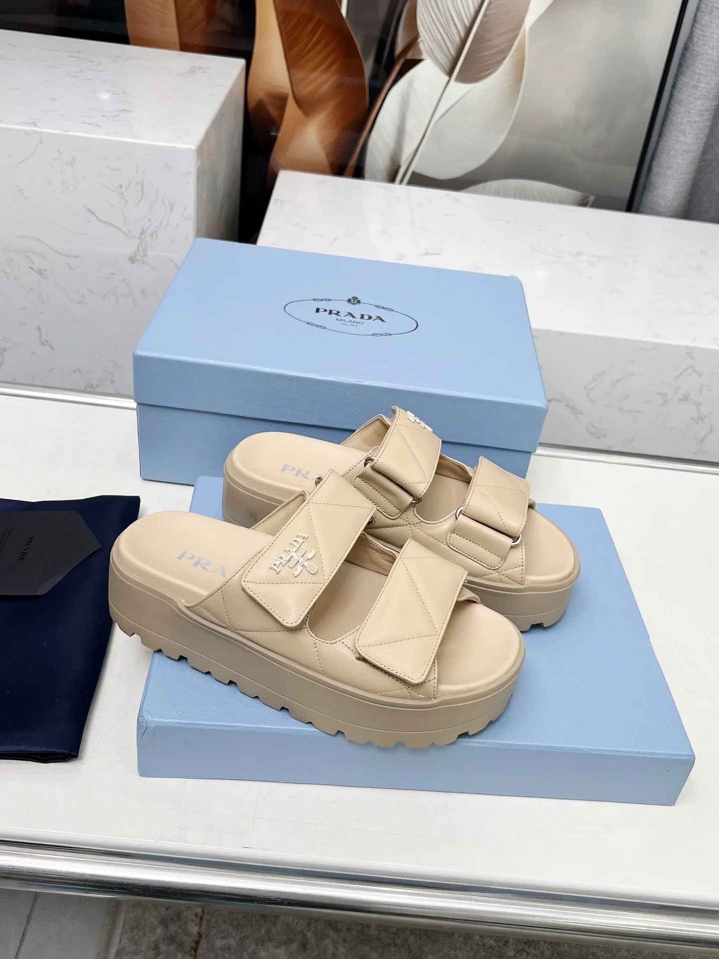 The brand Prada new arrivals outlet, Gender WomenSize US 5=EUR(35), US 5.5=EUR(36), US 6=EUR(37), US 7=EUR(38), US 8=EUR(39), US 8.5=EUR(40) get discount price with best quality!