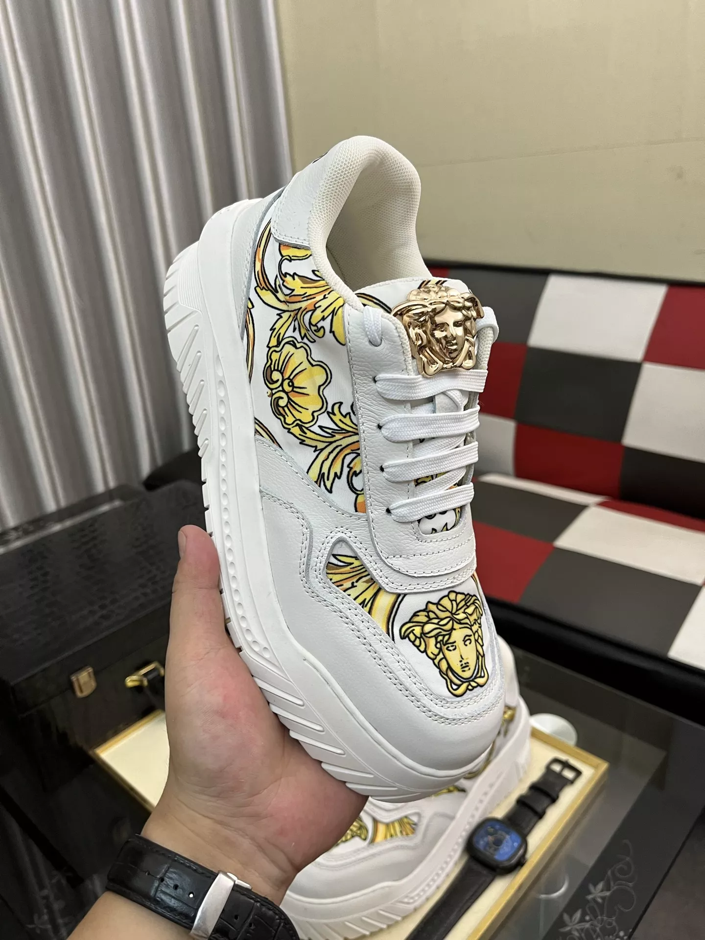 The brand Versace new arrivals outlet, Gender MenSize US 4=EUR(38), US 5=EUR(39), US 6=EUR(40), US 7=EUR(41), US 8=EUR(42), US 9=EUR(43), US 10=EUR(44) get discount price with best quality!