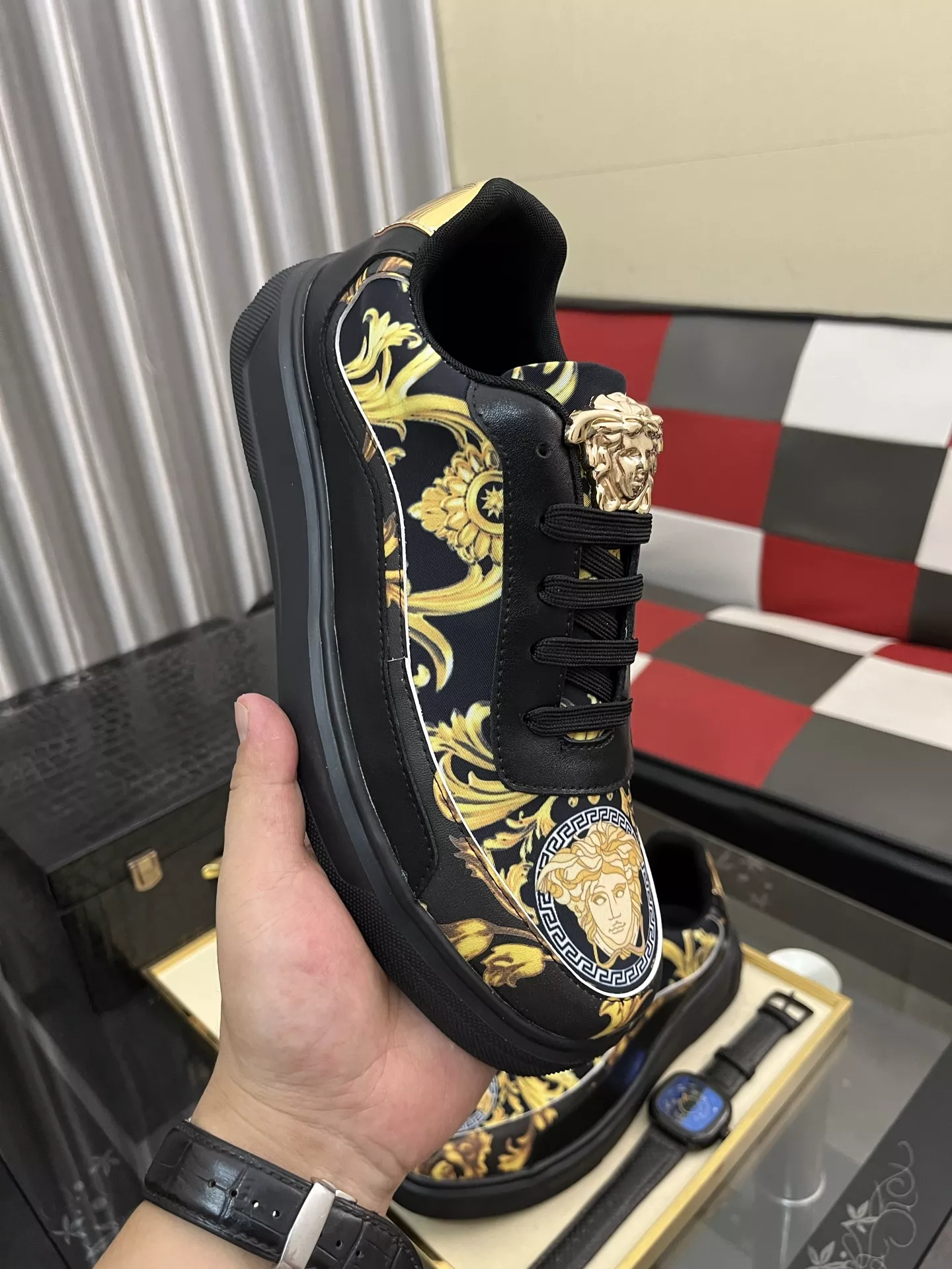 The brand Versace new arrivals outlet, Gender MenSize US 4=EUR(38), US 5=EUR(39), US 6=EUR(40), US 7=EUR(41), US 8=EUR(42), US 9=EUR(43), US 10=EUR(44) get discount price with best quality!
