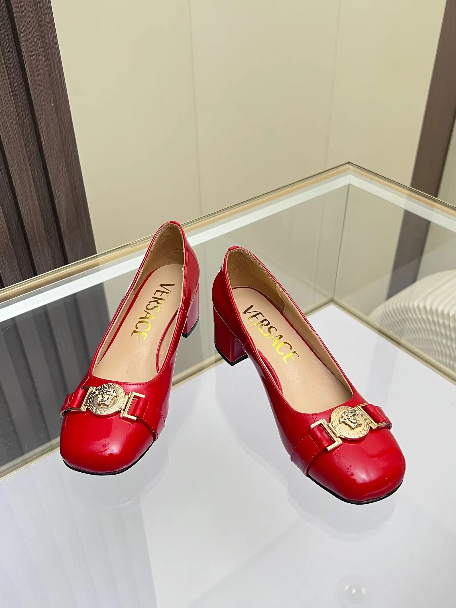 The brand Versace new arrivals outlet, Gender WomenSize US 5=EUR(35), US 5.5=EUR(36), US 6=EUR(37), US 7=EUR(38), US 8=EUR(39), US 8.5=EUR(40)Heels 3.5 CM get discount price with best quality!
