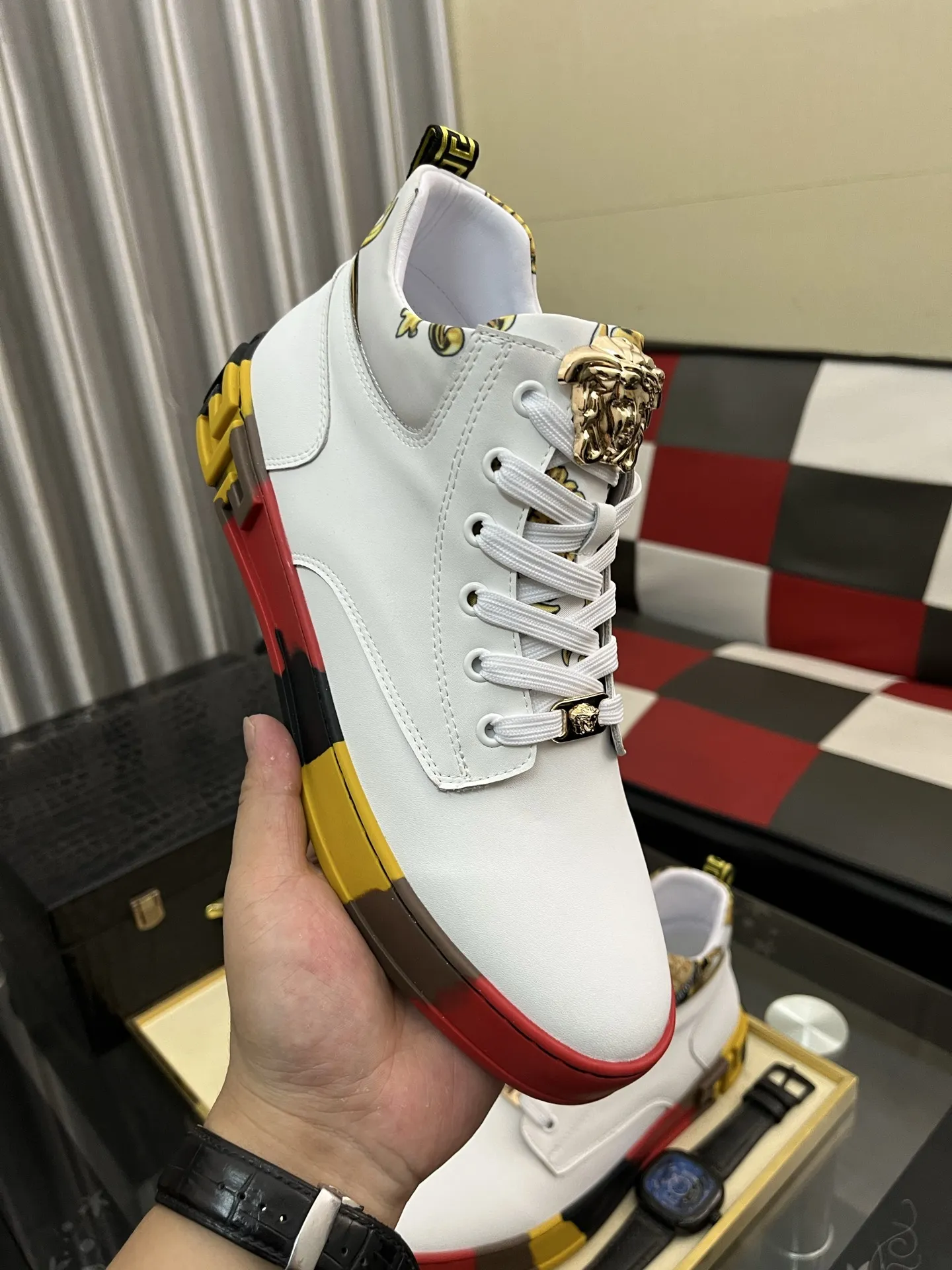 The brand Versace new arrivals outlet, Gender MenSize US 4=EUR(38), US 5=EUR(39), US 6=EUR(40), US 7=EUR(41), US 8=EUR(42), US 9=EUR(43), US 10=EUR(44) get discount price with best quality!