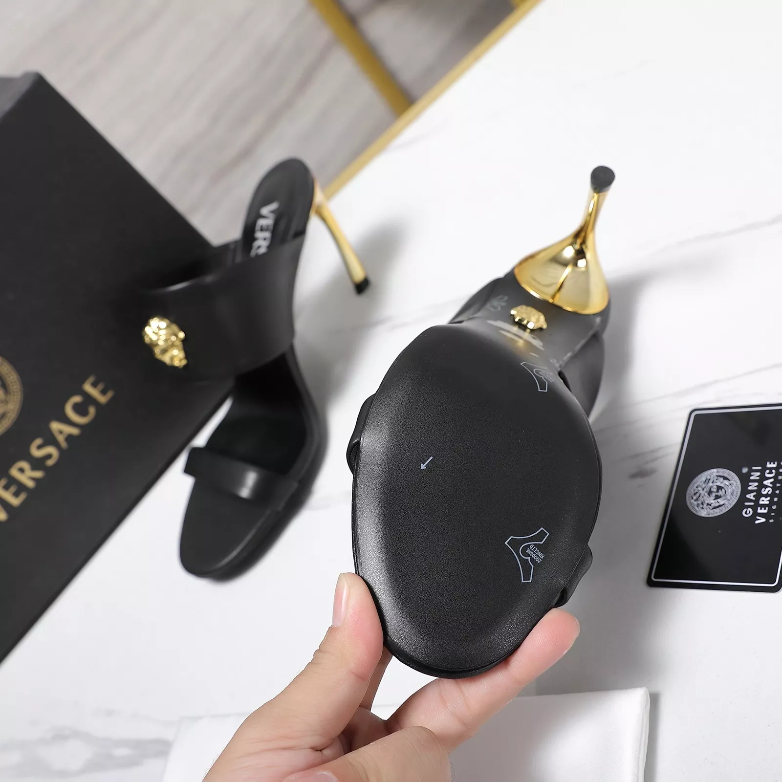 The brand Versace new arrivals outlet, Gender WomenSize US 5=EUR(35), US 5.5=EUR(36), US 6=EUR(37), US 7=EUR(38), US 8=EUR(39)Heels 8.5 CM get discount price with best quality!