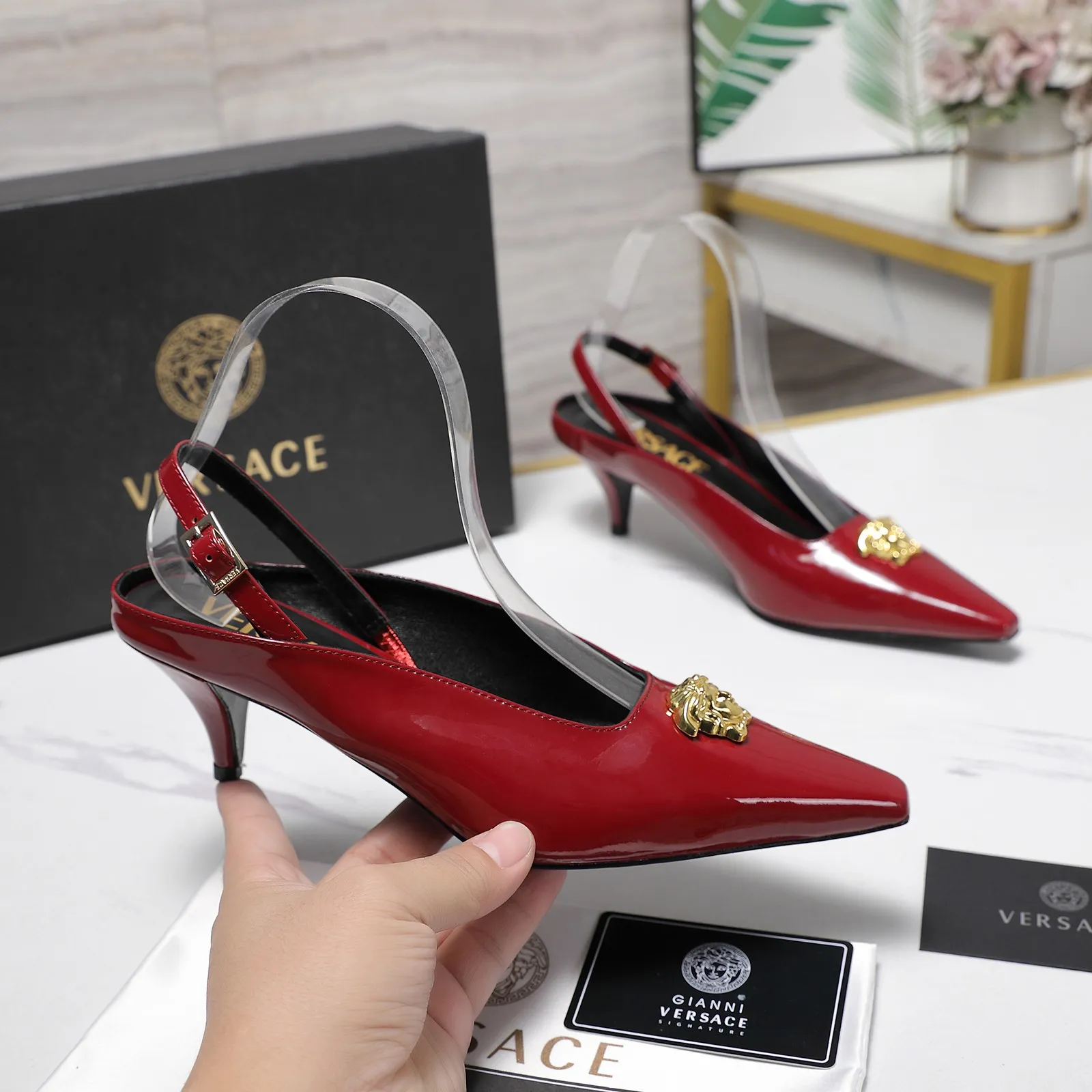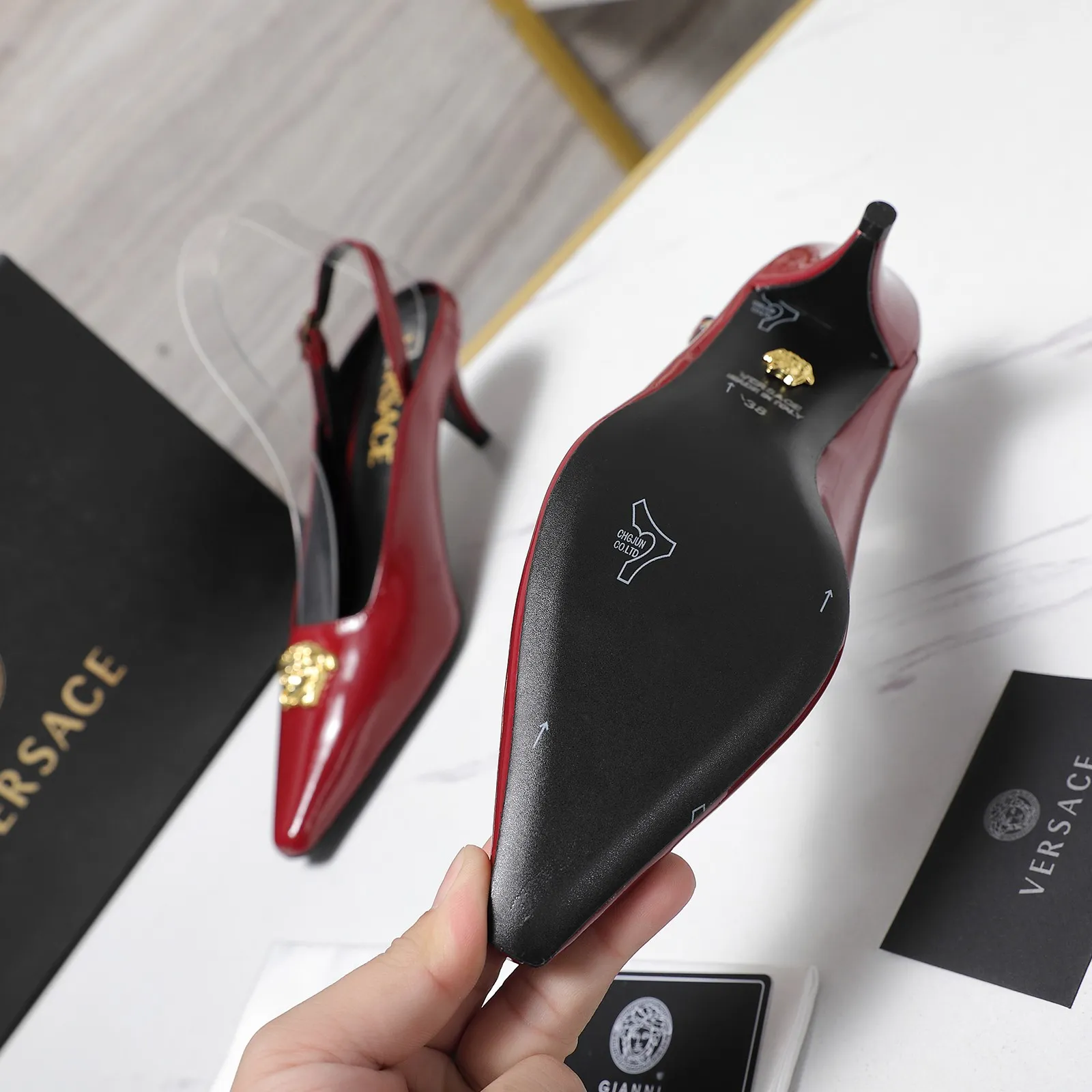 The brand Versace new arrivals outlet, Gender WomenSize US 5=EUR(35), US 5.5=EUR(36), US 6=EUR(37), US 7=EUR(38), US 8=EUR(39), US 8.5=EUR(40)Heels 5.5 CM get discount price with best quality!
