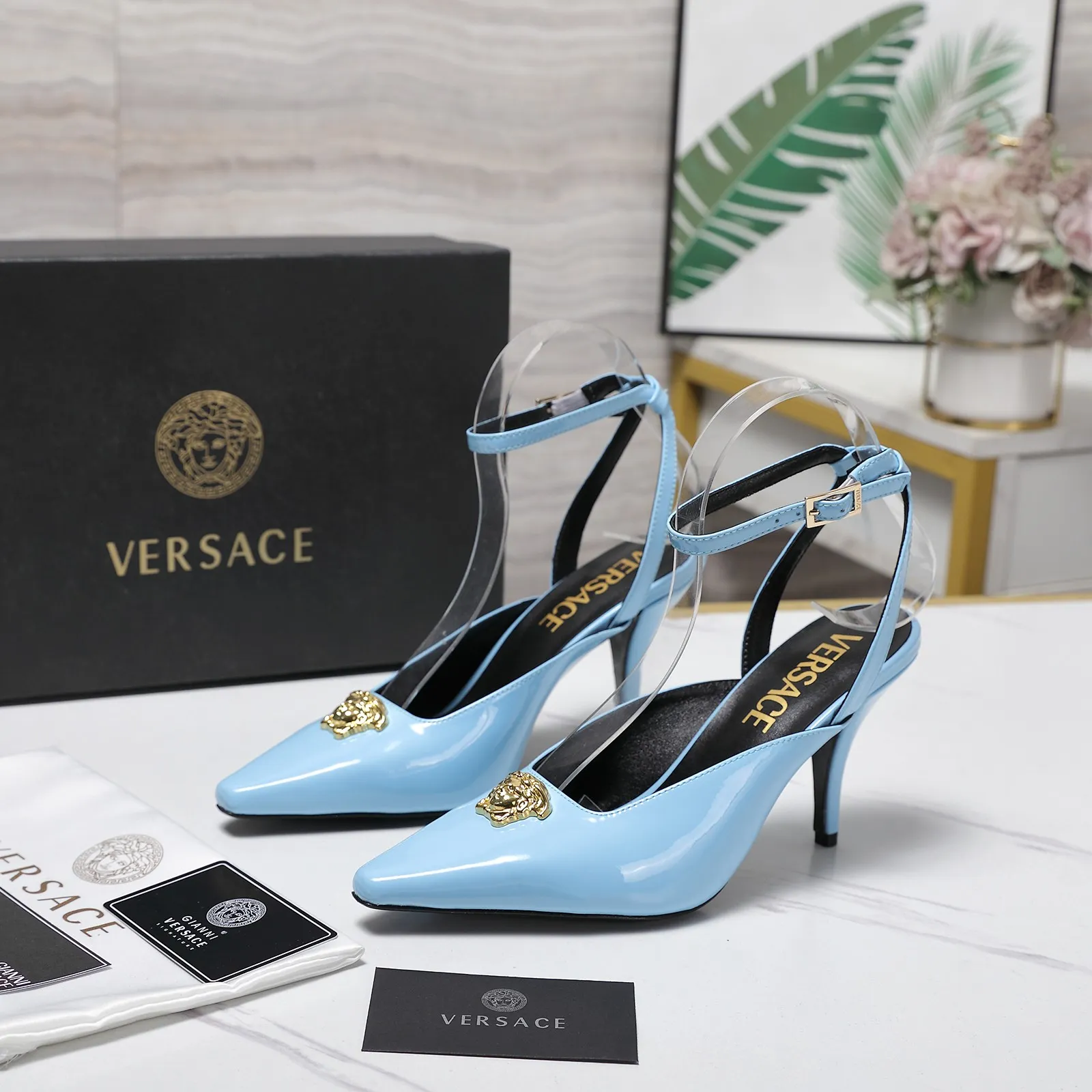 The brand Versace new arrivals outlet, Gender WomenSize US 5=EUR(35), US 5.5=EUR(36), US 6=EUR(37), US 7=EUR(38), US 8=EUR(39), US 8.5=EUR(40)Heels 8.5 CM get discount price with best quality!