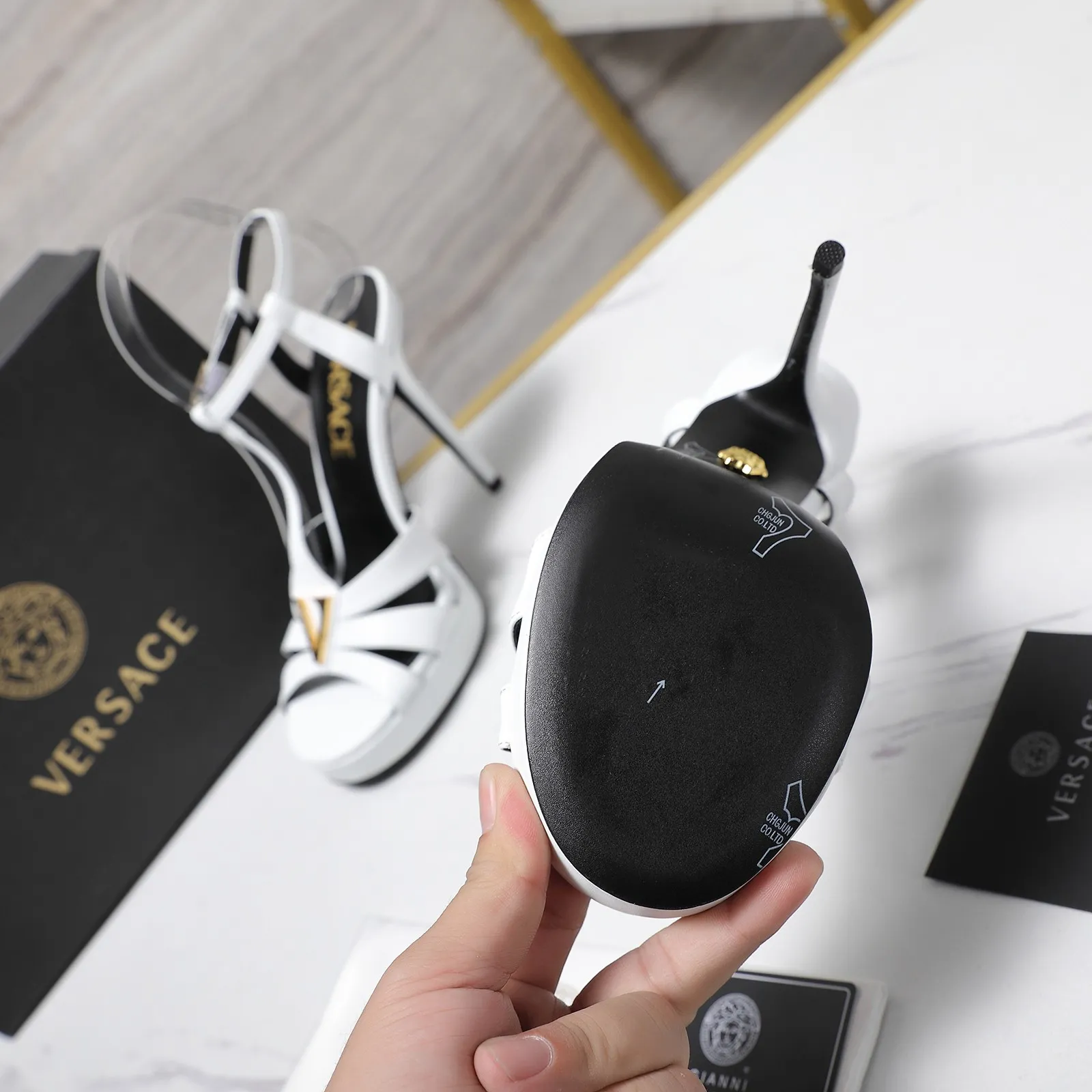 The brand Versace new arrivals outlet, Gender WomenSize US 5=EUR(35), US 5.5=EUR(36), US 6=EUR(37), US 7=EUR(38), US 8=EUR(39), US 8.5=EUR(40)Heels 12.5 CM get discount price with best quality!
