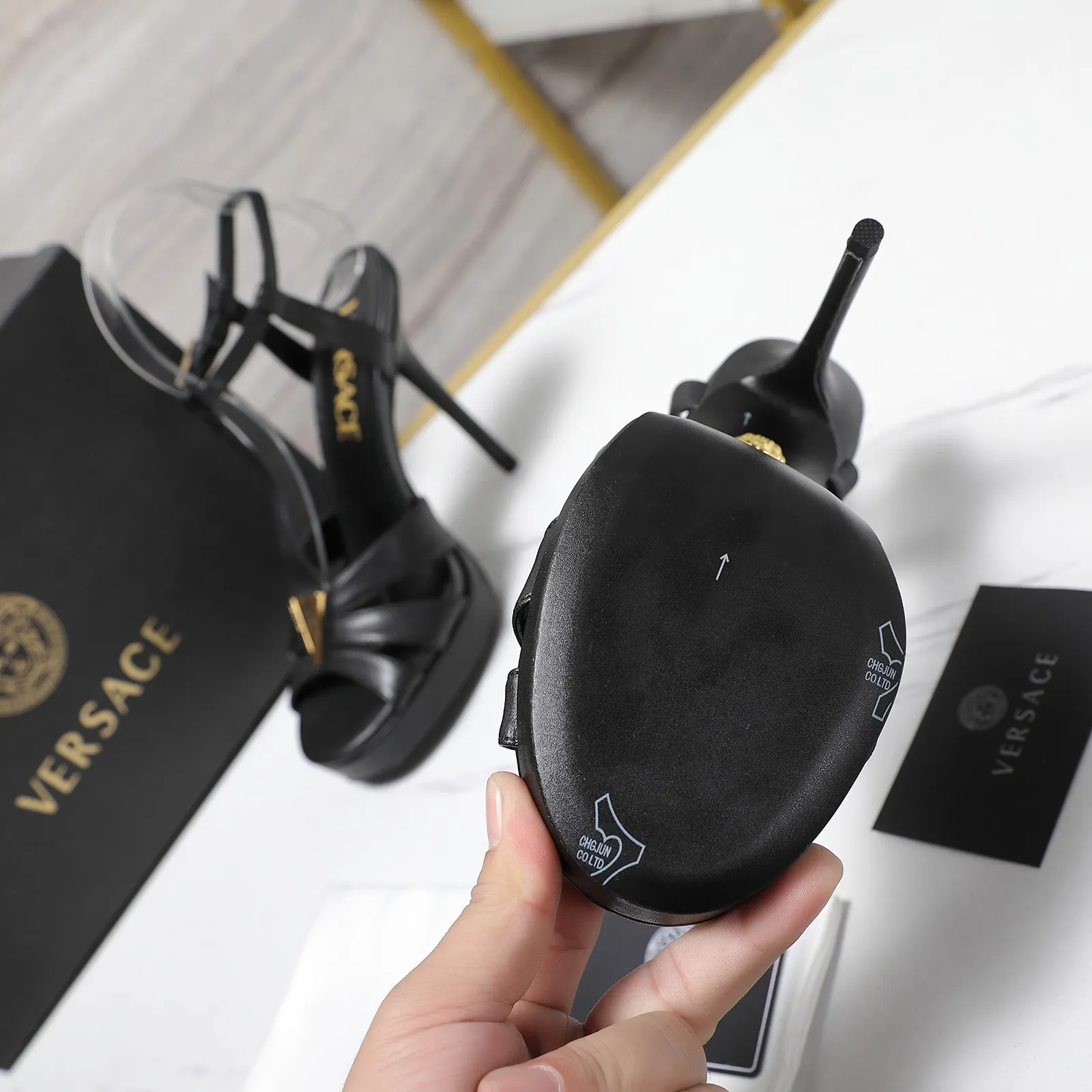 The brand Versace new arrivals outlet, Gender WomenSize US 5=EUR(35), US 5.5=EUR(36), US 6=EUR(37), US 7=EUR(38), US 8=EUR(39), US 8.5=EUR(40)Heels 12.5 CM get discount price with best quality!