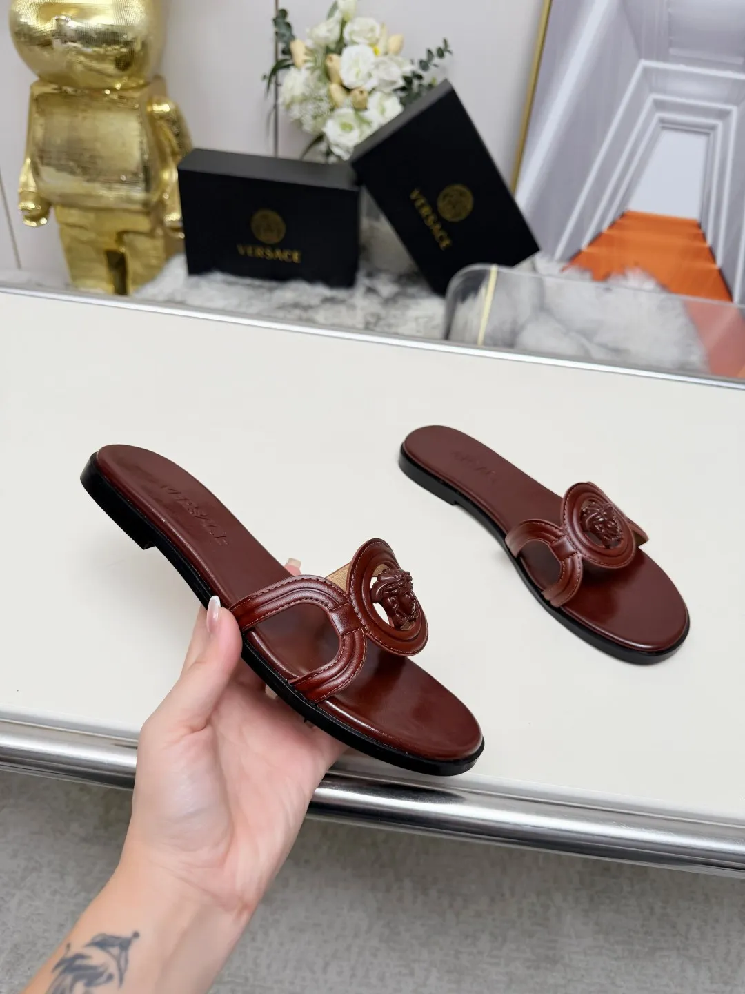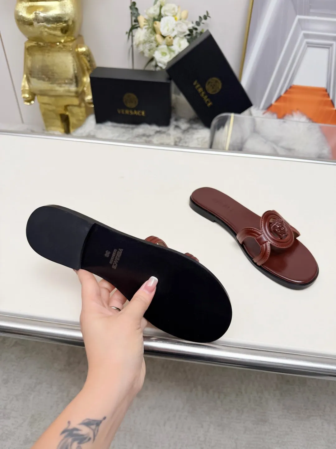 The brand Versace new arrivals outlet, Gender WomenSize US 5=EUR(35), US 5.5=EUR(36), US 6=EUR(37), US 7=EUR(38), US 8=EUR(39), US 8.5=EUR(40) get discount price with best quality!